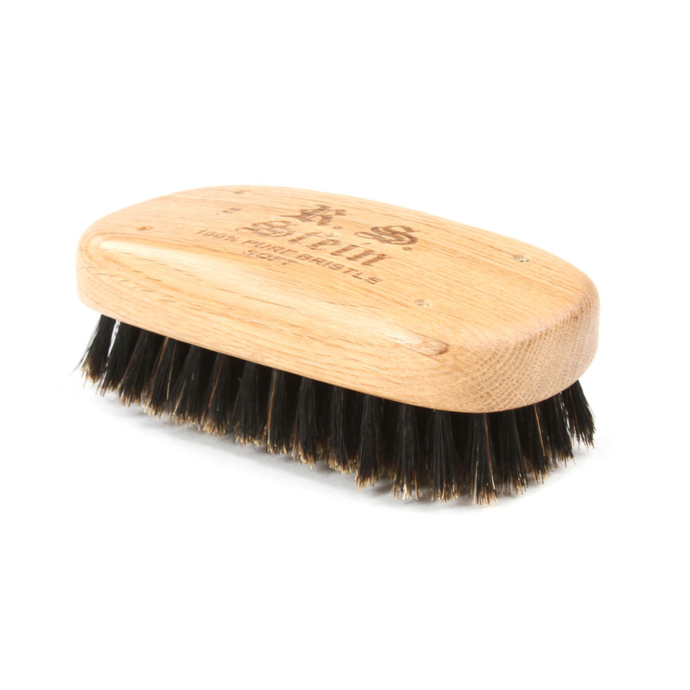 | Professional barbering and heirloom quality men’s grooming hair and beard brush featuring 100% pure premium soft natural boar bristles for superior hair conditioning, clean fades, smooth finishing, plus scalp and face stimulation. A superior “wave brush,” the square classic military palm style handle design is elegantly crafted from beautiful eco-friendly natural oak with a luxury grade matte finish. Color: Natural Oak Wood For nearly 50 years, Bass has designed luxury grade men's hairbrushes with an emphasis on natural materials. Our products are surprisingly affordable and recommended by master barbers worldwide. Experience classic grooming refinement with this heirloom-quality men's brush, featuring 100% pure premium soft natural boar bristles for gentle yet effective hair and beard conditioning. The square military palm style handle is masterfully crafted from eco-friendly natural oak with a luxury-grade shiny finish, offering a secure grip and traditional aesthetic. Ideal for very short cuts, fine hair, and detailed facial grooming, the brush distributes natural oils for a polished, healthy look while stimulating both scalp and face. Discover R.S. Stein by Bass Brushes | Heirloom Soft Boar Hair & Beard Brushes. |